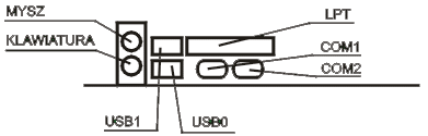 | Rys.1. Rozmieszczenie gniazd wej/wyj z tyłu komputera. |